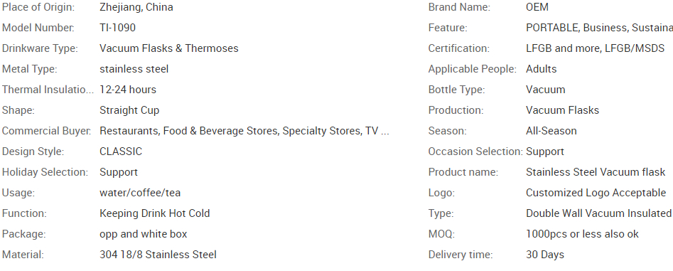 Preu de la tassa i el termo de doble paret de la Xina personalitzats a la fàbrica, sempre insistim en el principi de "La qualitat i el servei són la vida útil del producte".