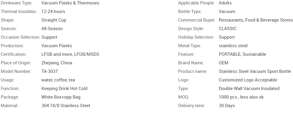 Tassa aïllada d'acer inoxidable Tassa d'aigua per esports a l'aire lliure