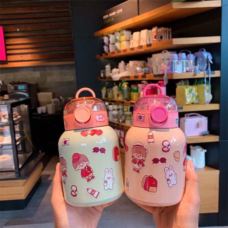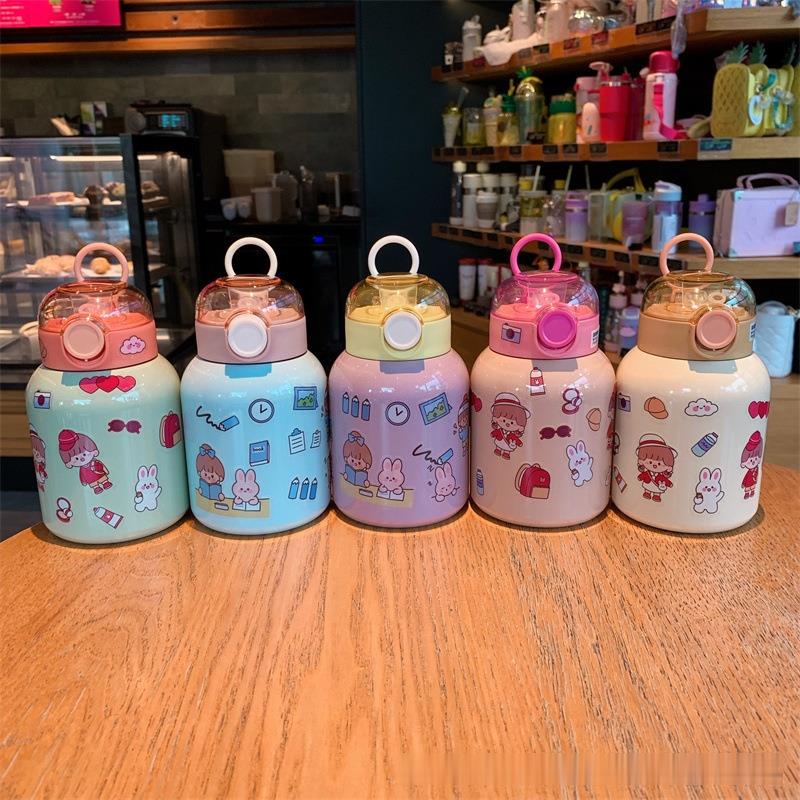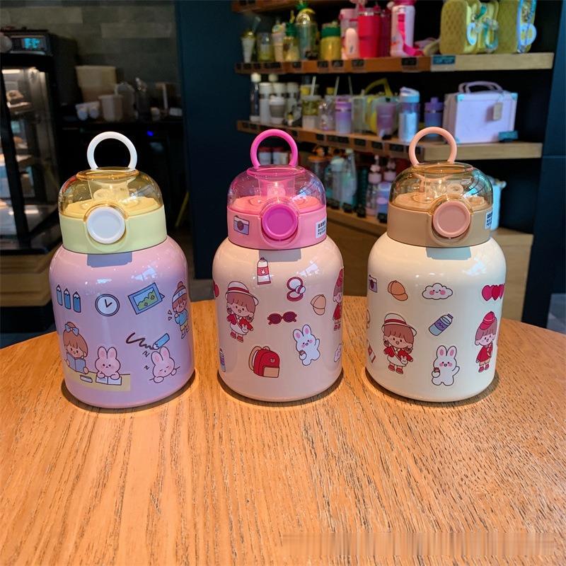 Koreano nga cartoon nga stainless steel nga thermos cup nga nag-bounce cover