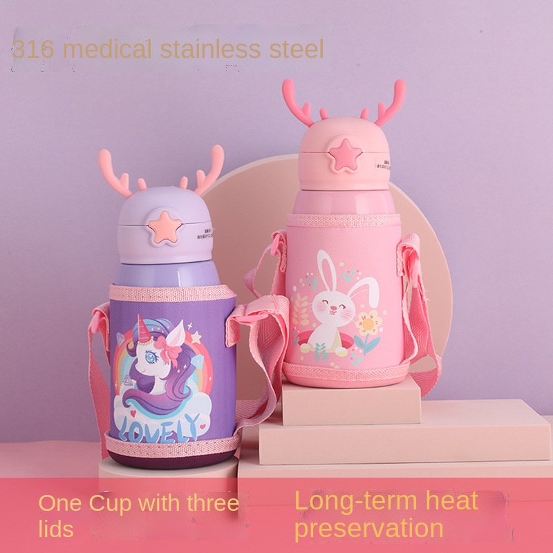 ʻO ke kīʻaha thermos keiki Antler me ke kila kuʻikuʻi me ka mauʻu