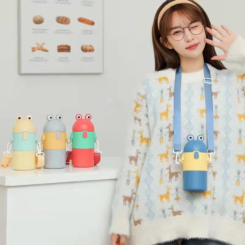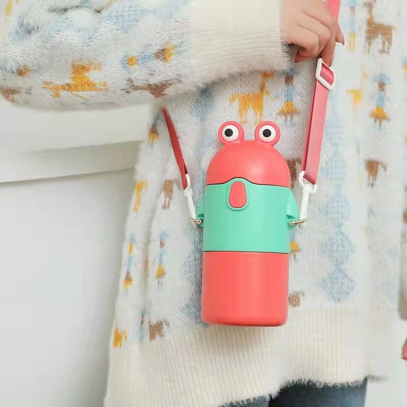 316 stainless steel cangkir termos girl lucu kartun kodhok cangkir mahasiswa portabel cangkir jerami kapasitas gedhe